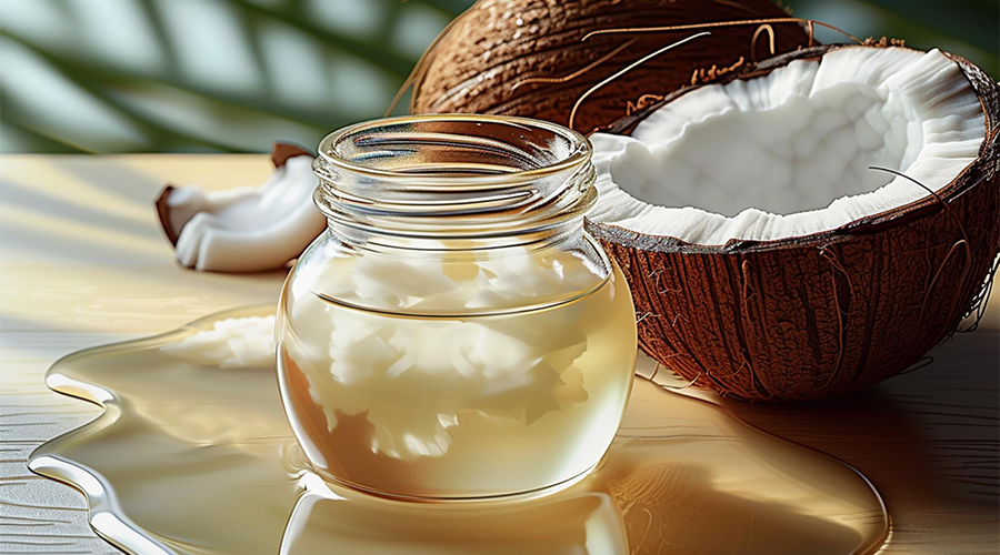 - Scoop a small amount of extra virgin coconut oil from the jar.