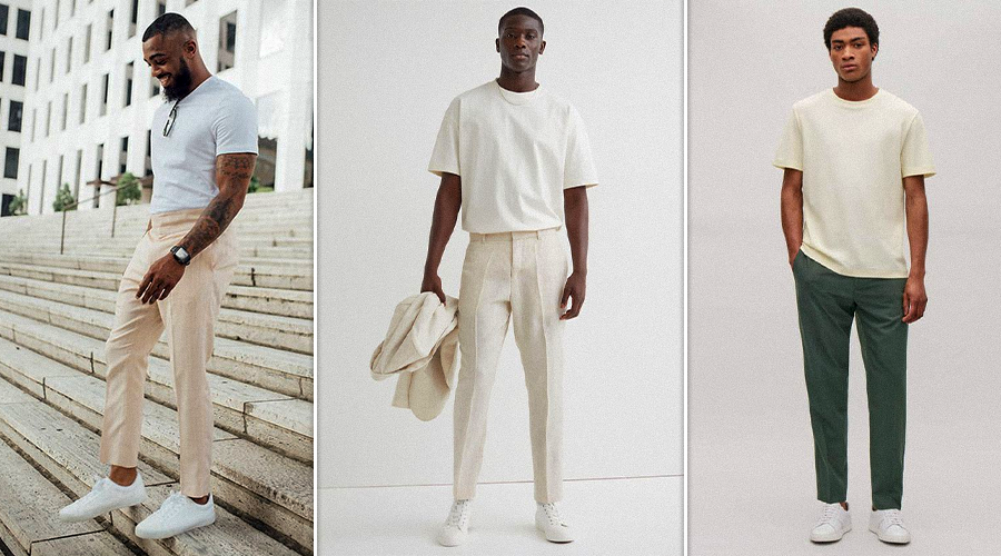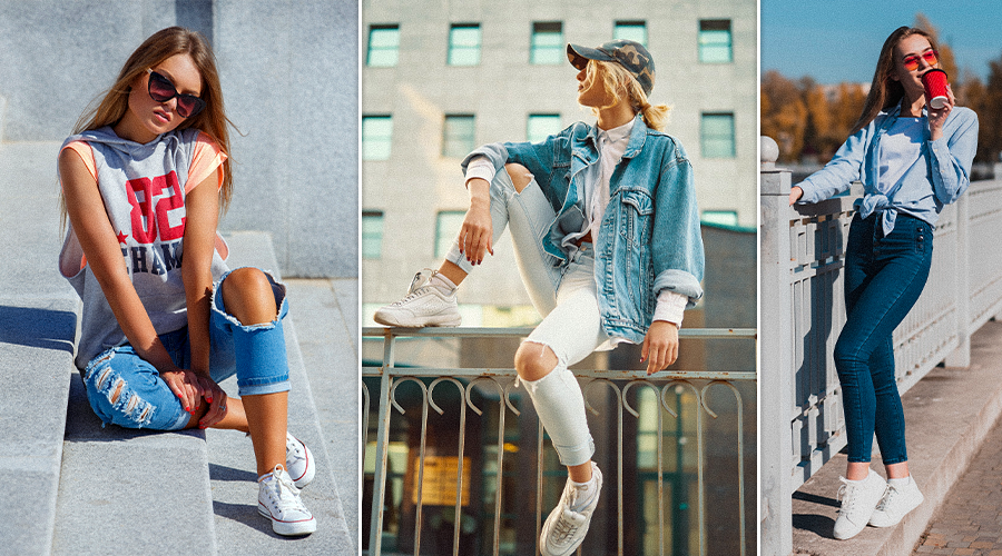 The timeless combination of classic white sneakers with tailored trousers is a surefire way to exude sophistication and comfort. Opt for well-fitted trousers in neutral colors like navy, charcoal, or black, and pair them with pristine white sneakers. Add a crisp white shirt or a simple blouse for a polished finish.
